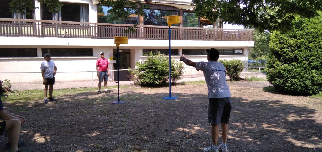 On ne change pas une équipe qui gagne. Telle pourrait être la devise de l’équipe des « Couramiaou » de notre office des sports engagée dans l’édition 2023 du challenge départemental Sport-santé senior organisée à l’initiative de l’Office Départemental des Sports Loire-Haute-Loire. Après Monistrol en 2022, le président Saïd Brahmi et son équipe avaient choisi cette année la métropole stéphanoise pour accueillir cette compétition réservée aux plus de 60 ans. C’est à l’Office du Mouvement Sportif Stéphanois qu’avait été confiée la mise en œuvre : la présidente Yolande Mas avait mobilisé ses bénévoles pour encadrer les 7 épreuves sur les installations sportives villardaires gracieusement mises à disposition par l’ASPTT Saint-Etienne en ce 16 juin ensoleillé. Si l’on retrouvait les traditionnels ateliers d’adresse et d’endurance reconduits chaque année, les organisateurs avaient tenu à y ajouter une touche locale. En effet, pour les lancers francs, les panneaux de basket s’étaient mués pour l’occasion en panier de korbal, sport d’origine néerlandaise très prisé dans le bassin stéphanois. L’atelier mystère, dévoilé seulement le jour du Challenge, était quant à lui une initiation à la sarbacane sous l’égide de la section du foyer laïque du Chambon Feugerolles.