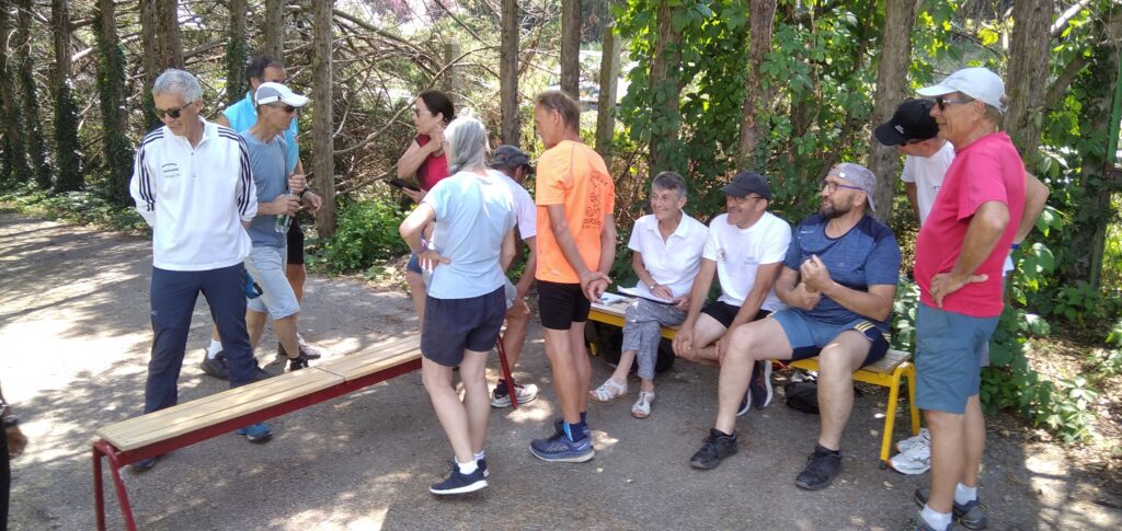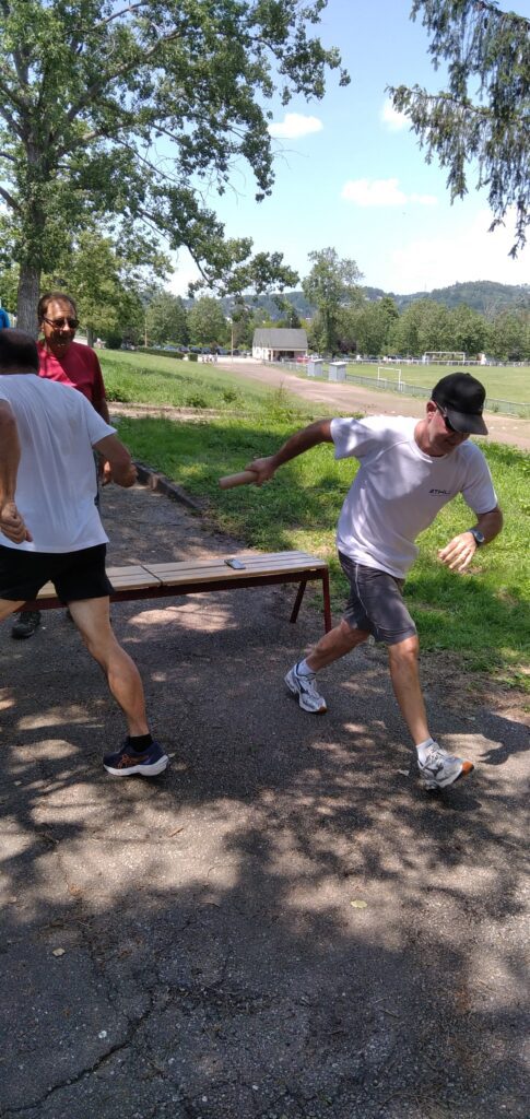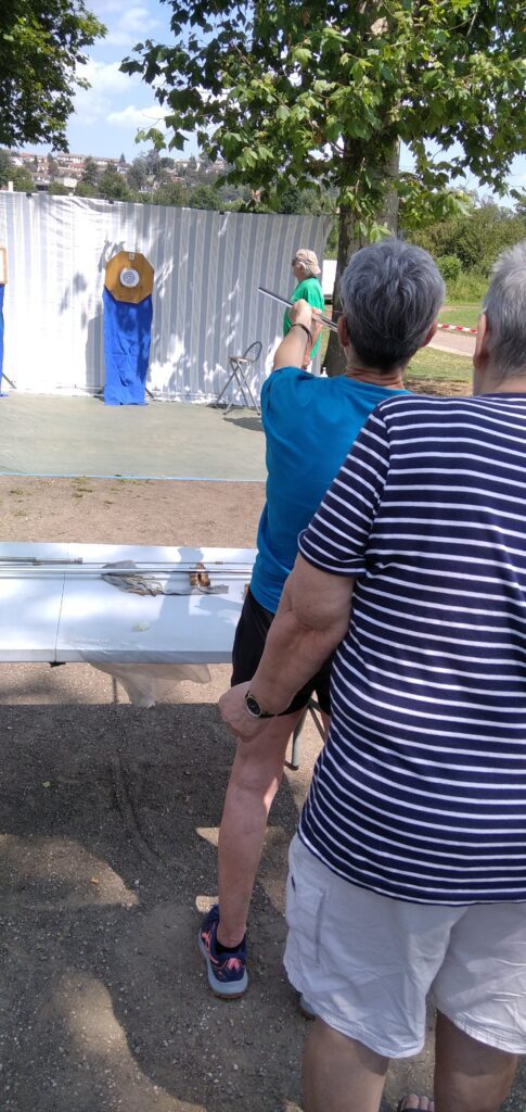 Coaché d’une main de fer mais avec bienveillance par la capitaine Mano Mérieux, le cinq majeur de notre office était composé de Jean-Paul Pichon, Gilbert Penel, Jean-Claude Vialla, Bernard Chanal et Yves Floquet. Après un repas convivial partagé avec les 5 autres équipes engagées, notre équipe affrontait la première épreuve, le test de marche rapide de 6 minutes, le but étant de parcourir la plus grande distance dans le temps imparti. L’après-midi démarrait sur de bonnes bases avec 760m parcourus. Les ateliers s’enchainaient avec plus ou moins de réussite, le plus difficile étant sans conteste le tir au panier de korfbal. La difficulté étant partagée par l’ensemble des participants, les couramiauds n’étaient pas trop inquiets après leur modeste score d’ensemble sur cette épreuve. Dernière étape du défi sportif, la sarbacane leur redonnait le sourire, les 29 points glanés leur permettant encore d’espérer.