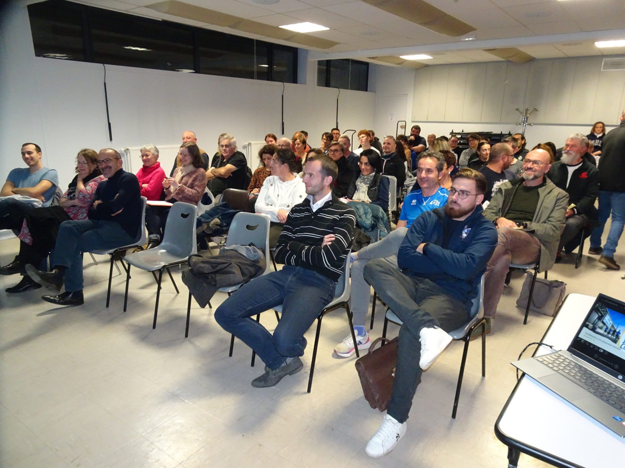 Après plus d’une heure et demi d’exposé, la séance se poursuivait de manière informelle autour du verre de l’amitié. Les échanges se prolongeaient en coulisse entre Jérôme Bruyas et les sportifs présents avec l’envie d’en savoir plus et pourquoi pas d’anticiper sur d’autres sessions sur le même thème.