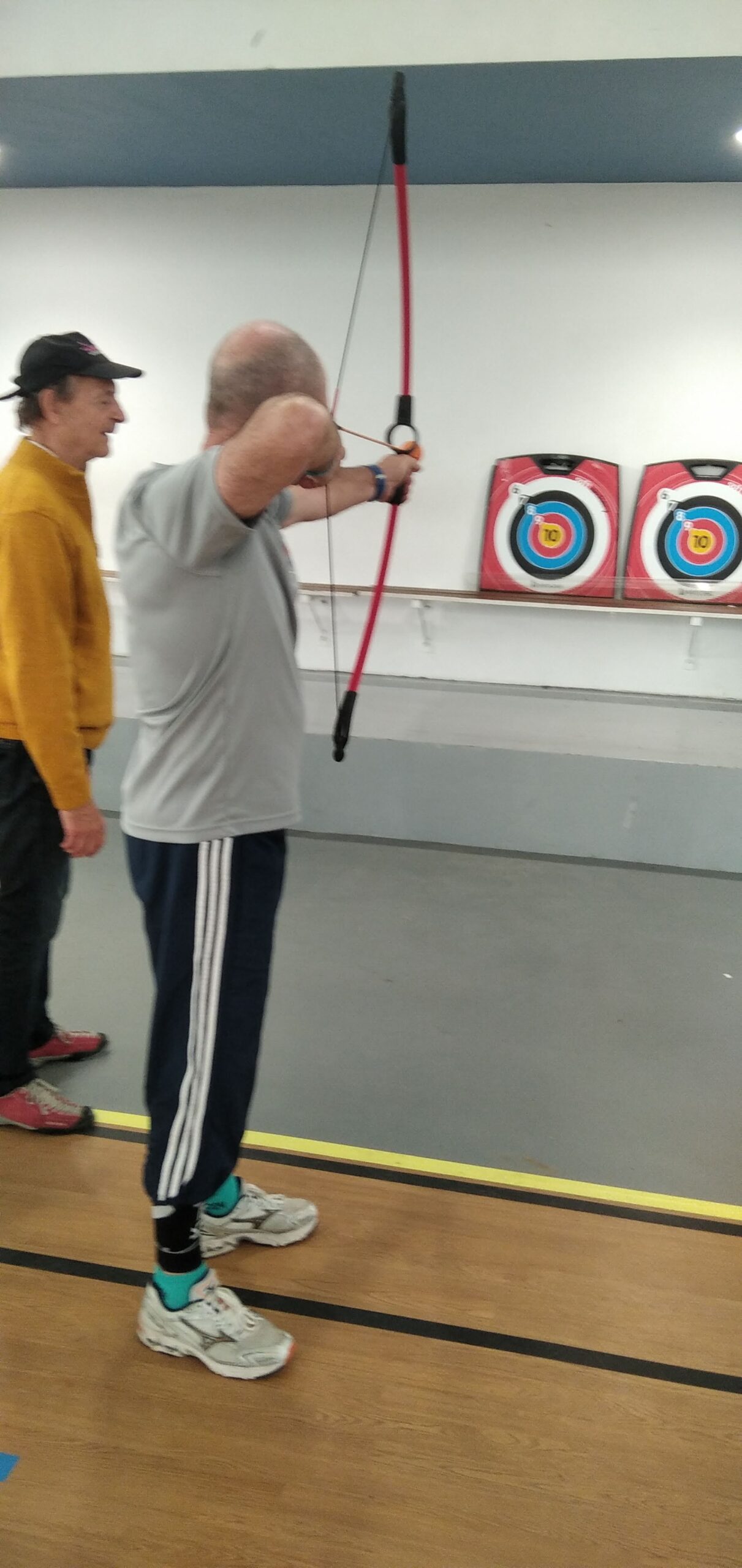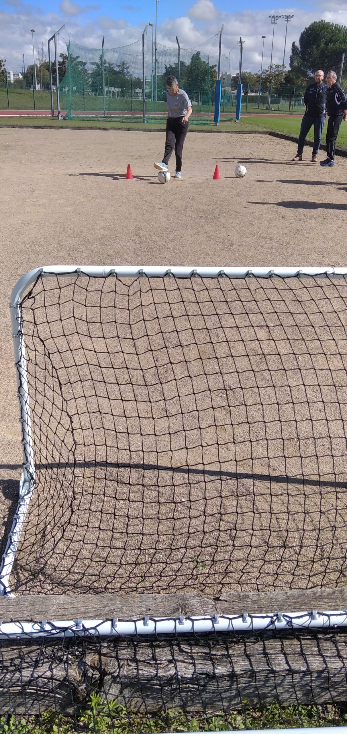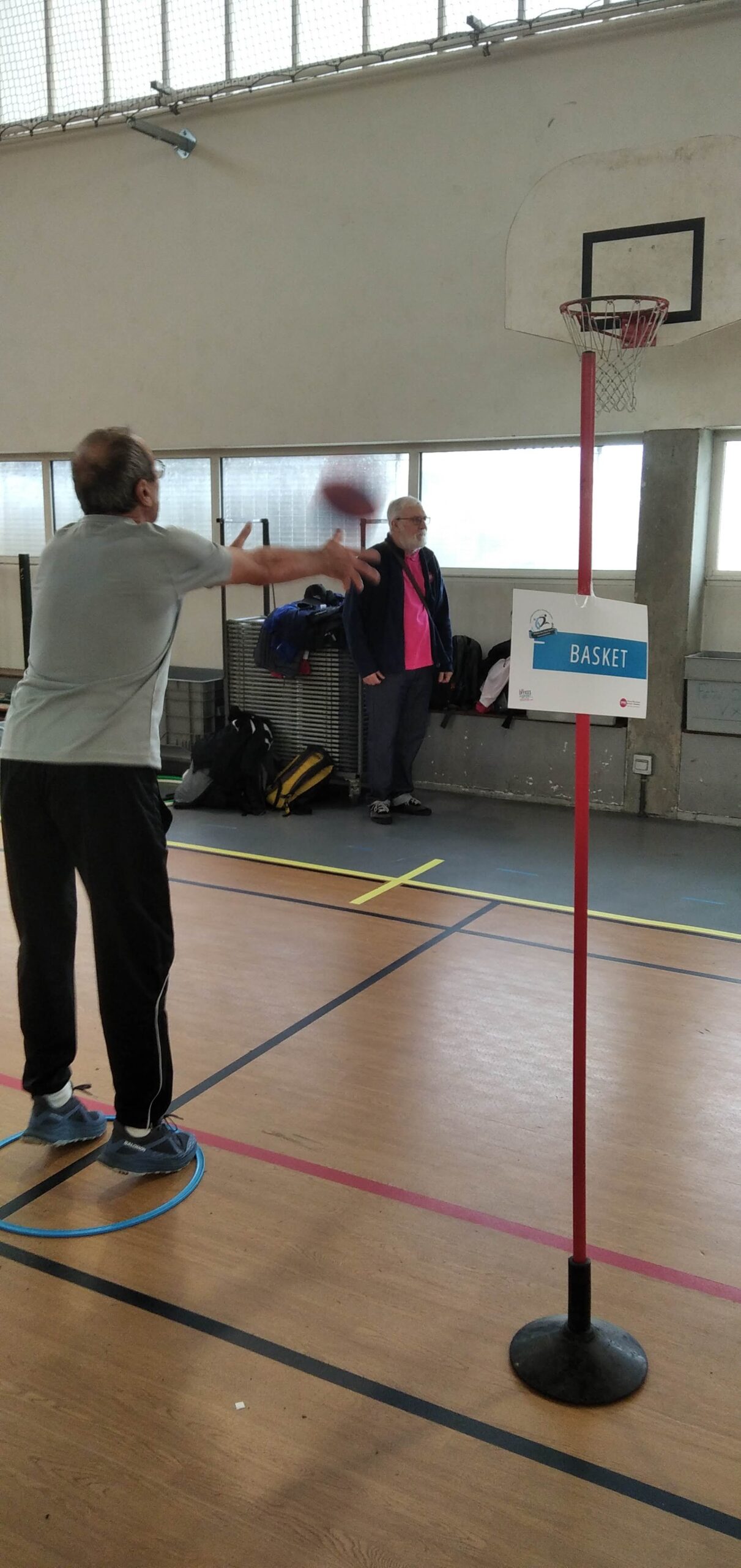 Suivaient les ateliers d’adresse avec cette fois des fortunes diverses notamment aux lancers francs de basket et aux tirs au but en football. Si le tir à l’arc remettait un peu de baume au cœur à nos saint-chamonais, il fallait également composer avec deux nouveaux ateliers : la passe à cinq sur deux minutes en handball conclue par un tir d’adresse et la boule lyonnaise avec un atelier de pointage dans une cible tracée au sol.