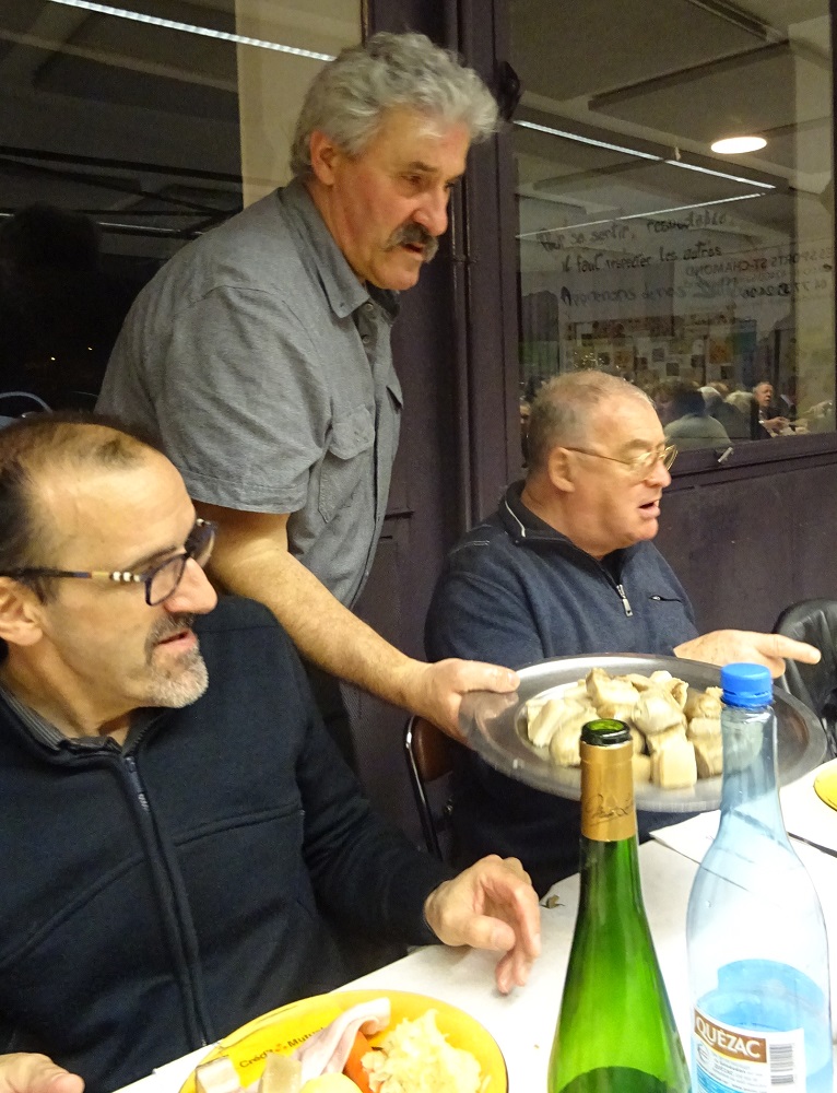 Notre maire, Hervé Reynaud prenait la parole pour remercier l’Office des Sports qui organise chaque année cette belle rencontre conviviale et gastronomique. Il ajoutait que les travaux effectués à la Maison des Sports avaient pour but d’offrir un édifice rénové au monde sportif de notre ville. L’inauguration est prévue dès la fin des travaux pour la mi-mai. Andonella Fléchet et Pierre Toussaint respectivement maires-adjoints à la vie associative et à la vie sportive complétaient la liste des édiles ainsi que nos anciens maire Gérard Ducarre et Philippe Kizirian. Puis ce fut le moment de déguster la délicieuse choucroute préparée par le président lui-même aidé de quelques membres du comité directeur triés sur le volet. Pendant ce temps, Marie-Pierre, notre secrétaire, officiait en cuisine et dirigeait son équipe de marmitons, de serveurs et de plongeurs avec autorité et efficacité. A l’issue de la soirée, l’ordre du jour étant épuisé, l’assemblée se séparait avec la promesse de se retrouver dès le 26 mai prochain pour participer aux festivités sportives qui marqueront la date anniversaire de la création de notre Office des Sports, il y a maintenant 40 ans.