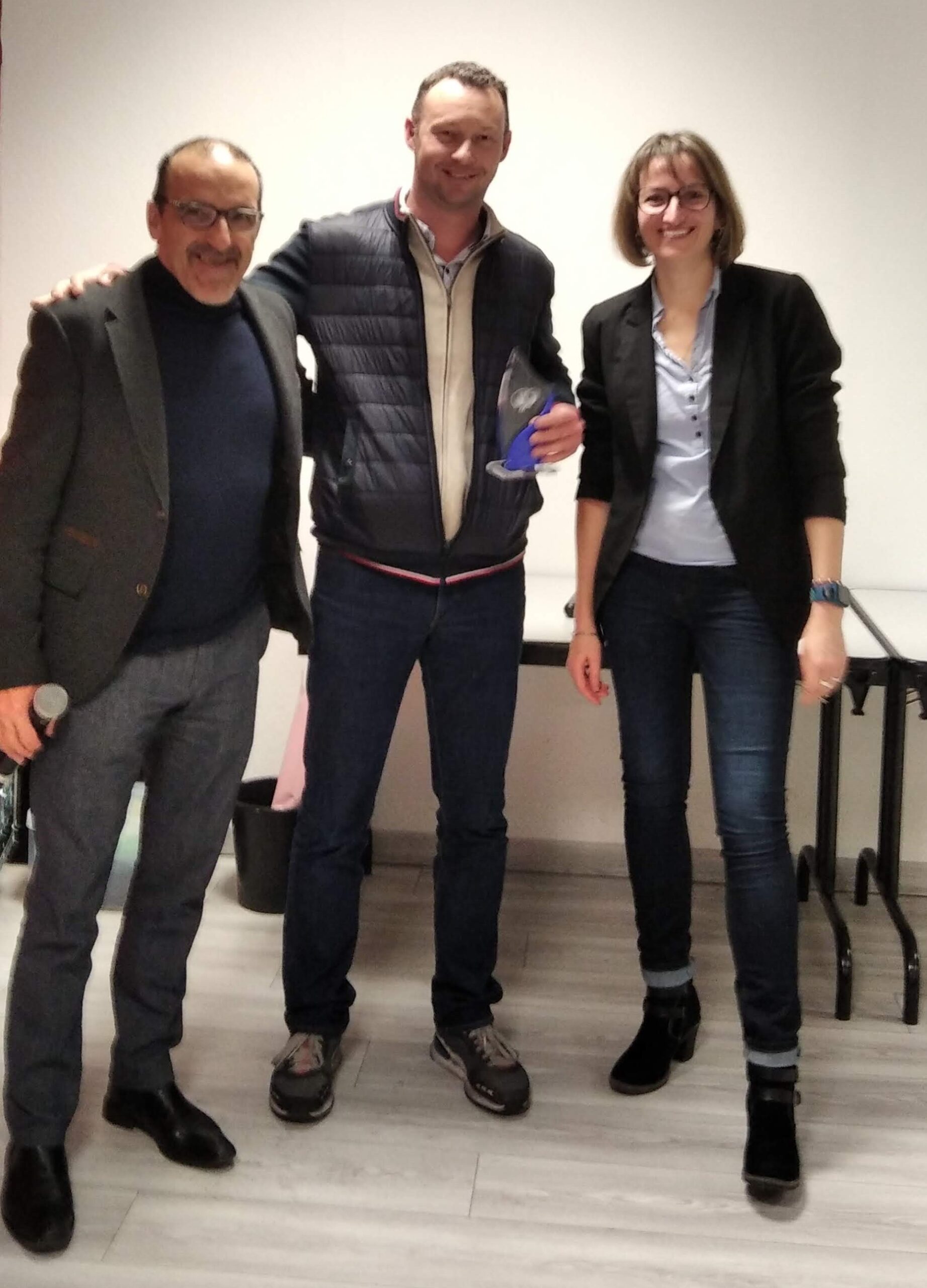 Aussi pour l’ensemble de ton investissement et au vu du temps consacré à la vie de la « Jeanne » durant ces 42 années, l’Office des Sports te remercie sincèrement en t’offrant ce trophée.