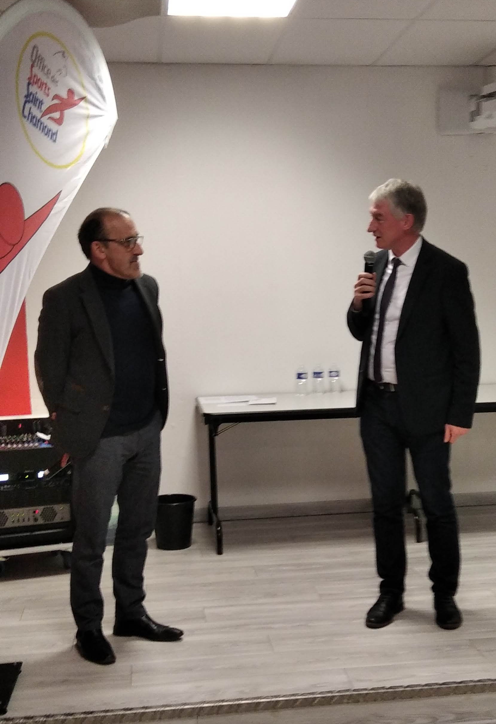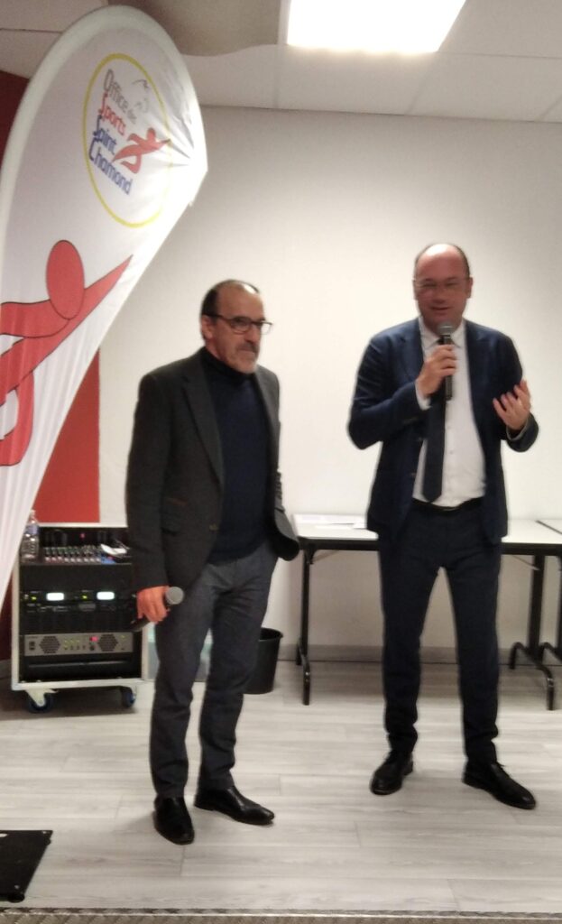 Chaque dirigeant ayant reçu un trophée des mains du président de l’OSSC, la remise des récompenses s’est conclue par la prise de paroles des élus : Daniel Fayolle adjoint aux sports, Axel Dugua Maire de Saint-Chamond, Hervé Reynaud sénateur et Emmanuel Mandon député.