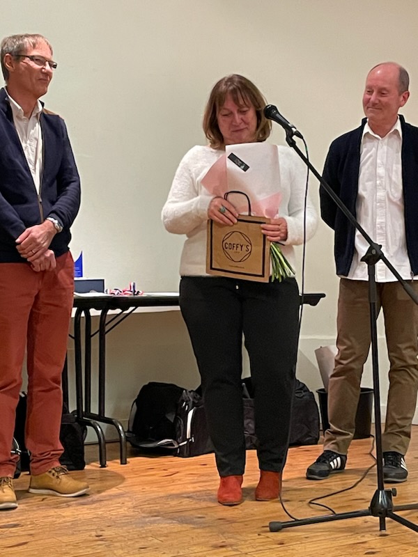 La remise des récompenses se concluait par une attention offerte à Roselyne Rousset, membre du comité directeur, qui a effectué un remplacement bénévole et efficace de notre secrétaire pendant son congé maladie.