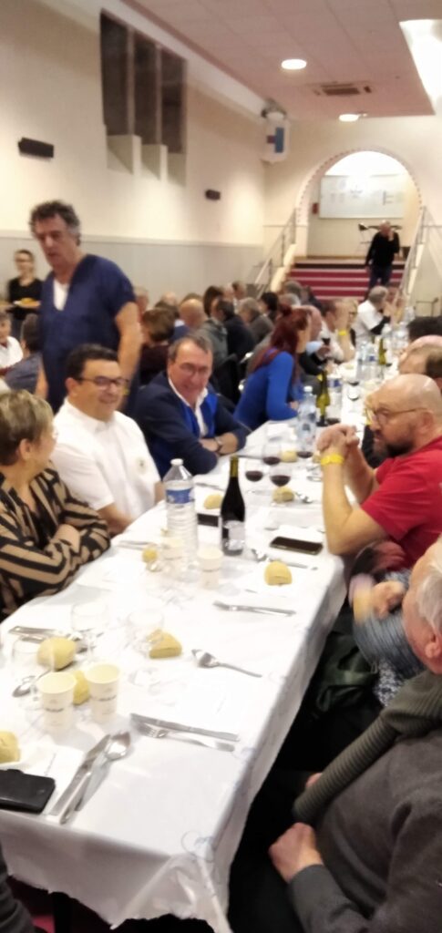 A l’issue de cette cérémonie, la soirée des associations a réuni une centaine de convives. Notre Office des Sports invite en effet chaque année des représentants des associations sportives de notre cité afin de partager un moment convivial et festif autour d’un bon repas. Pour changer de la traditionnelle choucroute, le choix s’était porté sur un délicieux et copieux couscous préparé par Karim du Viand’art, traiteur renommé installé au champ du Geai à Saint-Chamond. A noter que certains membres du comité directeur n’ont pas hésiter à épauler les charmantes serveuses qui ont œuvré tout au long de la soirée. On a même pu admirer une tenue parfaitement adaptée au contexte culinaire !